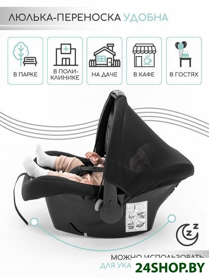 - Крепление: посредством ремней автомобиля