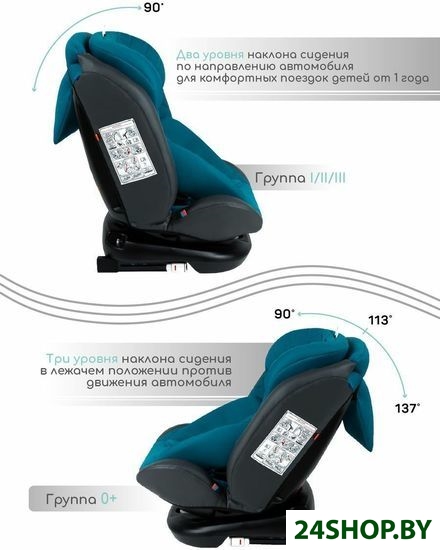 - Крепление: посредством ремней автомобиля, ISOFIX, якорное