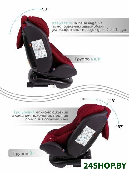 - Крепление: посредством ремней автомобиля, ISOFIX, якорное