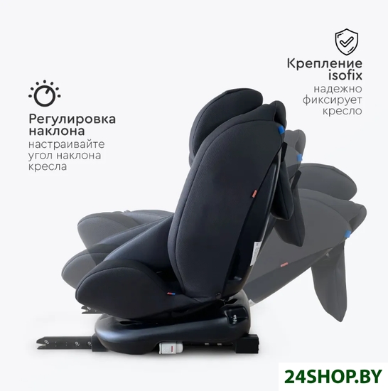 - Крепление: посредством ремней автомобиля, ISOFIX, якорное