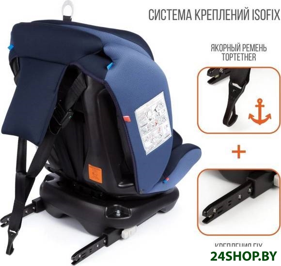 - Крепление: посредством ремней автомобиля, ISOFIX, якорное
