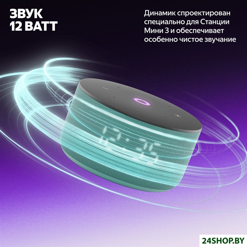 Описание и характеристики Яндекс Станция Мини 3 с часами (бирюзовый)