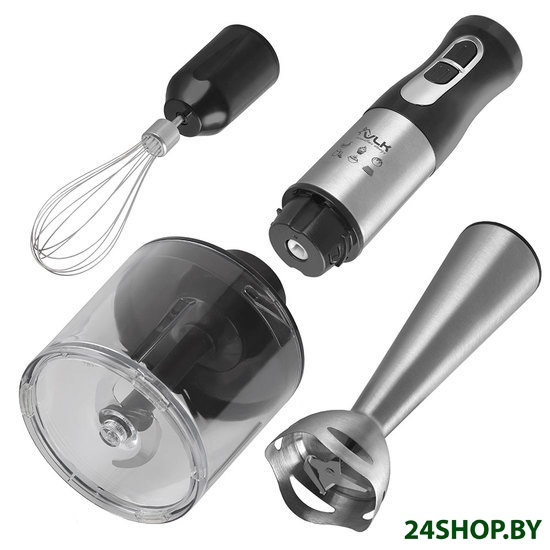 - Функциональные особенности: -Специальная форма погружной насадки предотвращает попадание брызг на рабочую поверхность-Эргономичный дизайн прибора-Низкий уровень шума и вибрации-Материал ножей – нержавеющая сталь-Снятие насадки одним легким нажатием