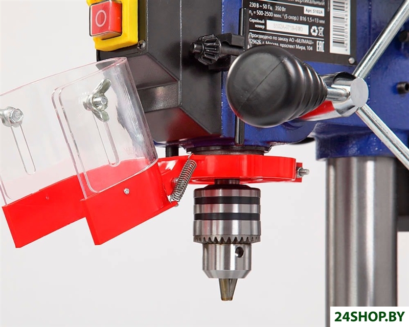 - Комплект поставки: Стол рабочий 1Головка сверлильная в сборе 1Основание станка 1Рукоятка фиксации рабочего стола 1Патрон сверлильный 1Колонна 1Ключ патрона 1Рукоятка 3Ключ шестигранный 1Болт 3Руководство по эксплуатации 1Ключ шестигранный 1Тиски (63,5 мм) 1Упаковка 1