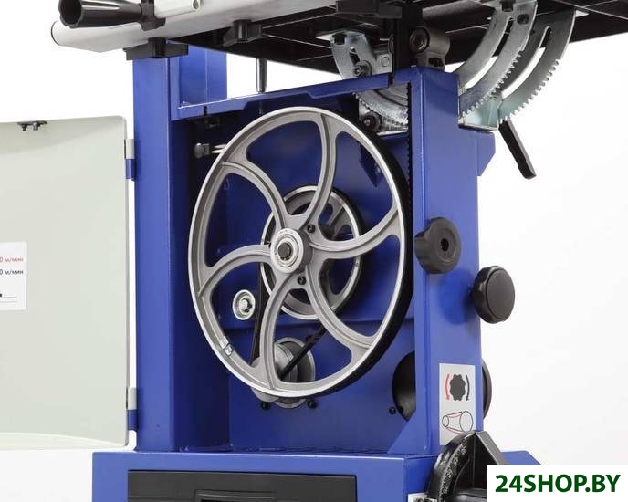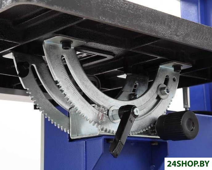 - Комплект поставки: - Станок ленточнопильный;- Рабочий стол в сборе;- Параллельная направляющая;- Упор угловой;- Перекладина каркасного основания малая - 2;- Перекладина каркасного основания большая- 2;- Толкатель;- Упор параллельный (в сборе);- Опора боковая- 4- Кронштейн толкателя - 1;- Полотно пильное 2240×12,7×0,5 мм 4TPI;- Набор ключей;- Набор крепежа;- Приспособление для резки круга.