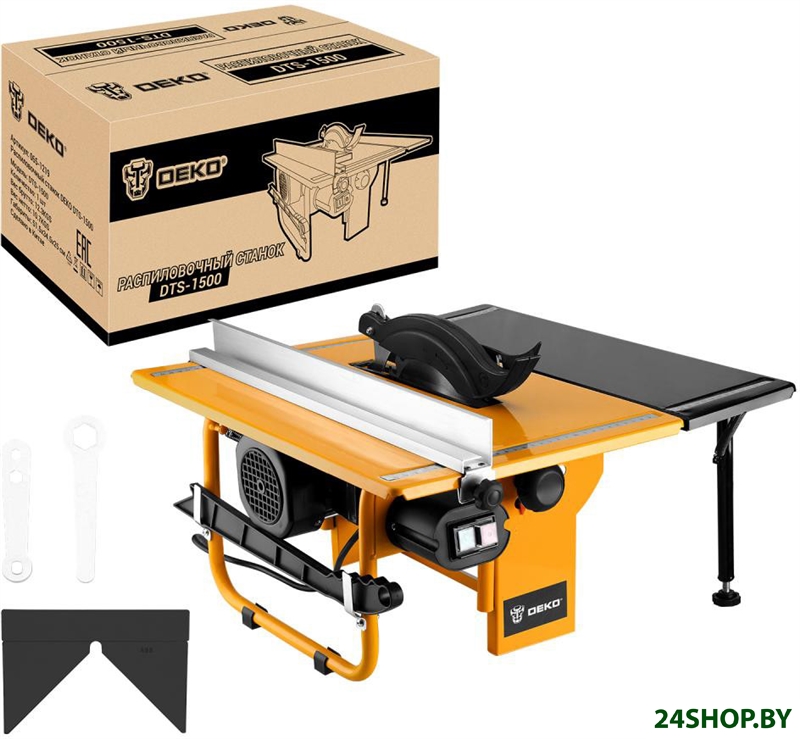 - Комплект поставки: Распиловочный станок - 1 шт.Распиловочный стол - 1 шт.Удлинитель распиловочного стола - 1 шт.Защитный кожух - 1 шт.Распиловочный диск - 1 шт.Толкатель - 1 шт.Угловой упор - 1 шт.Параллельный упор - 1 шт.Кольцевой ключ (М12) - 1 шт.Накидной ключ (М5, М6) - 1 шт.Металлические плаcтины - 2 шт.Барашковые гайки - 2 шт.Руководство по эксплуатацииКоробка