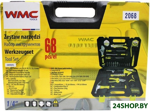 Описание и характеристики WMC Tools 2068 (с 2-мя АКБ, кейс, набор оснастки)