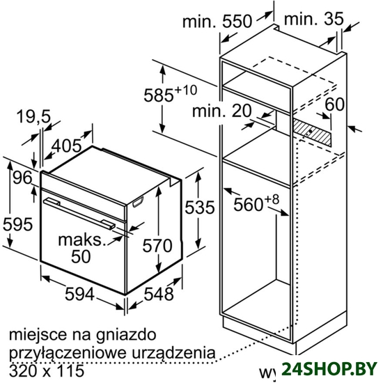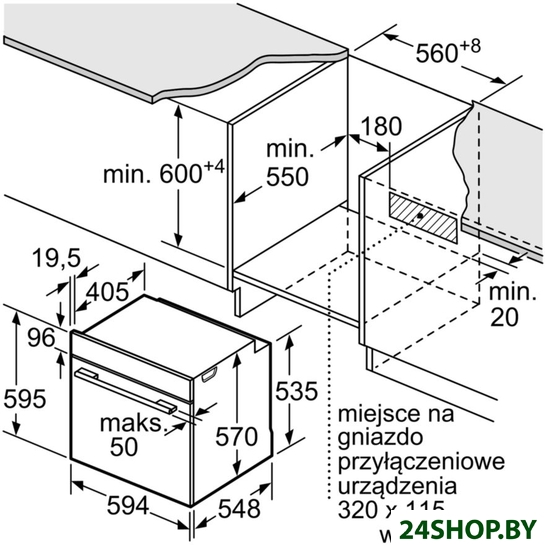 - Глубина: 55 см