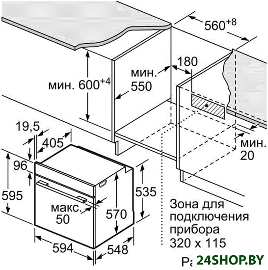 - Глубина: 55 см