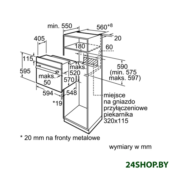 - Глубина: 55 см