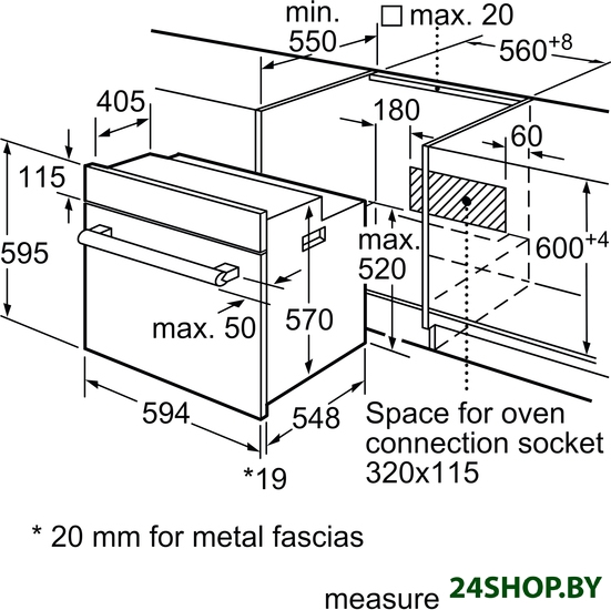 - Глубина: 55 см