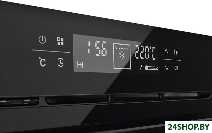 - Режимы работы: нижний нагрев, верхний нагрев, двухсторонний нагрев, вентиляционный нагрев, гриль + конвекция, двухсторонний нагрев + конвекция, размораживание