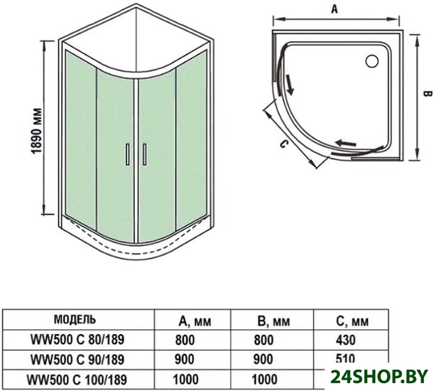- Форма поддона: закругленный