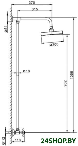 - Форма верхнего душа: круглая