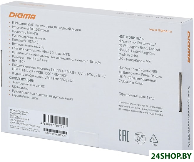 Адрес производства: Дигма НИППОН КЛИК ЛТД, 3/Ф, Джонсим Плейс, 228 Квинс Роад Ист, Ваньчай, Гонконг, Китай.