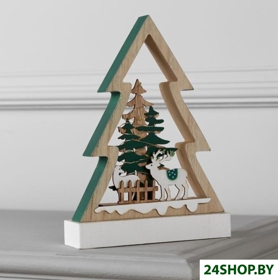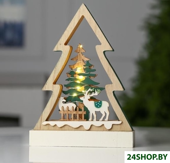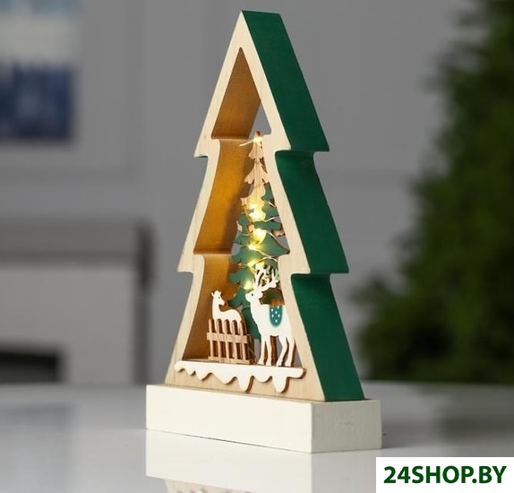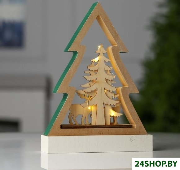 Описание и характеристики LuazON Елочка с оленями 6117391 (теплый белый)