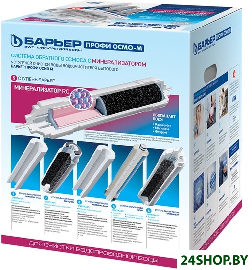- Тип фильтра(ов): механический, обратный осмос (мембранный), угольный (сорбционный), обогащающий