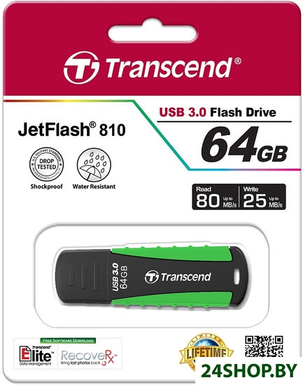 Описание и характеристики Transcend JetFlash 810 Black-Green 64GB (TS64GJF810)