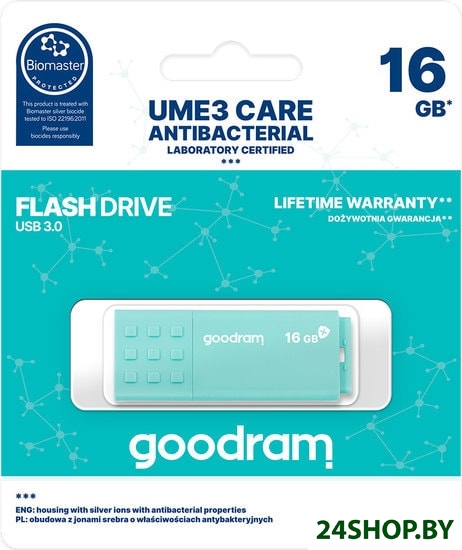Описание и характеристики GOODRAM UME3 Care 16GB (бирюзовый)