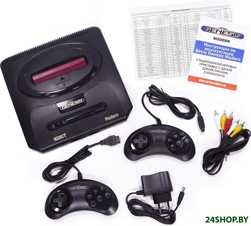 - Полная комплектация: - игровая консоль- два проводных геймпада- AV-кабель- адаптер питания- документация