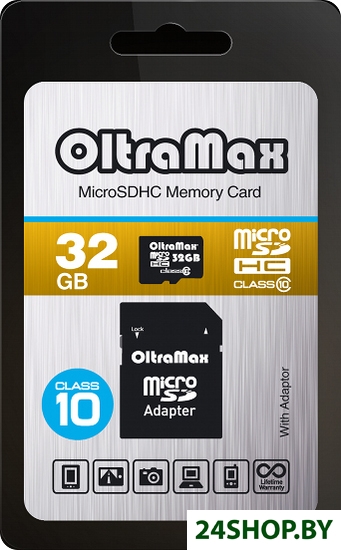 Описание и характеристики OltraMax MicroSDHC 32GB Class10 (с адаптером)