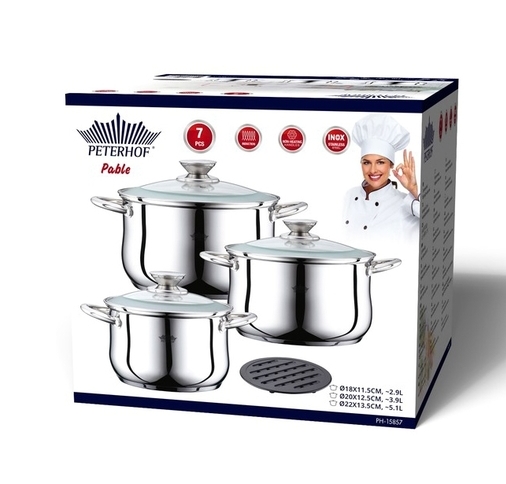 - Количество кастрюль в комплекте: 3