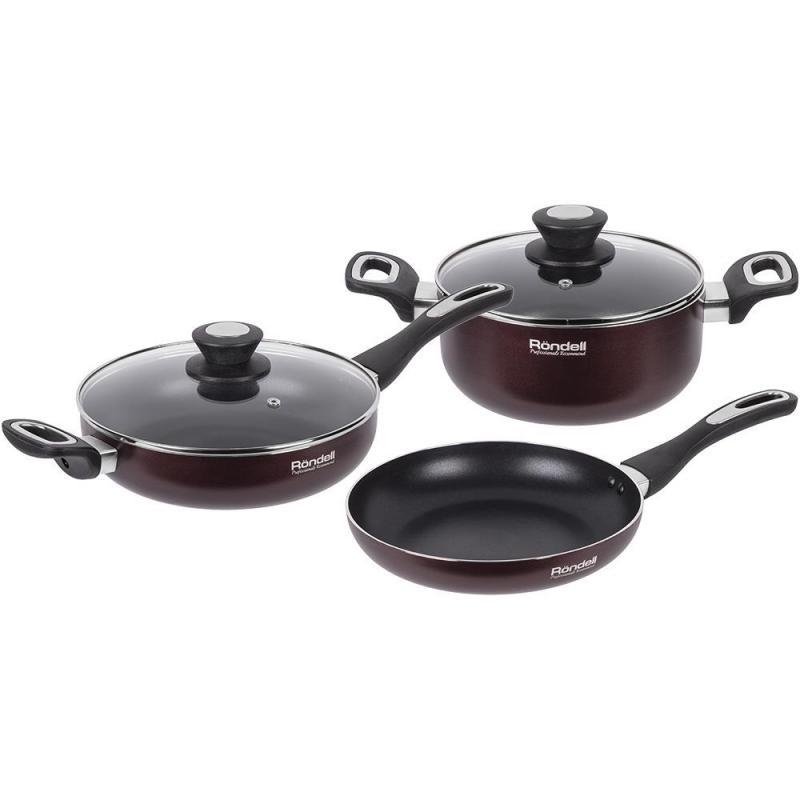 Набор посуды RONDELL Praktika (RDA-576) 5 предметов: сотейник с крышкой, сковорода, кастрюля с крышкой.