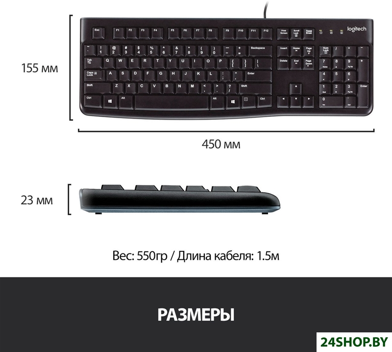 Описание и характеристики Logitech K120 920-002583 (нет кириллицы)