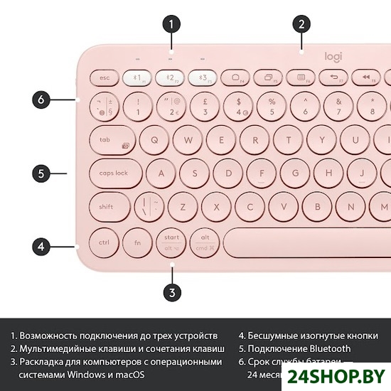 Описание и характеристики Logitech Multi-Device K380 Bluetooth (розовый)