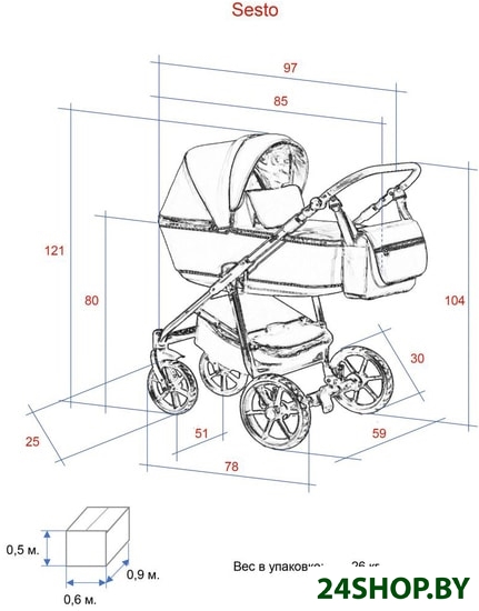 - Диаметр передних колес: 25 см