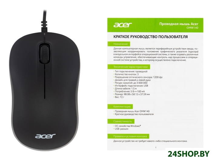 Описание и характеристики Acer OMW140 (черный) (ZL.MCEEE.00L)