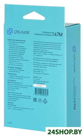 Описание и характеристики OKLICK 147M USB (черный) (1454525)