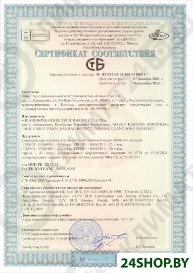 Импортер: ООО Климат24бел, 246003, г. Гомель, ул. 2-ая Революционная, д. 8.