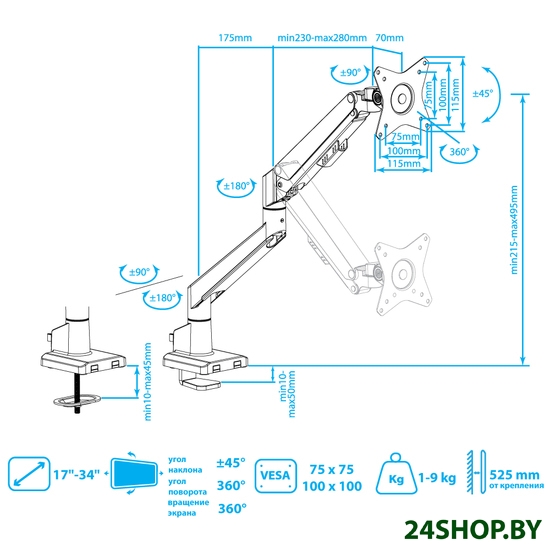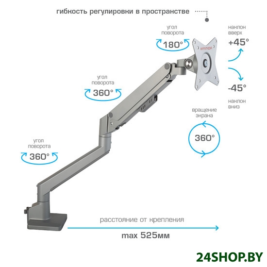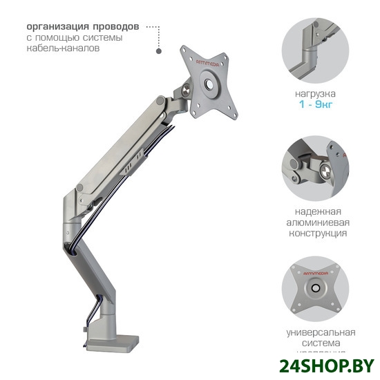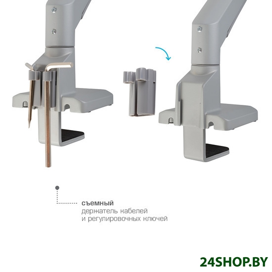 - Функциональные особенности: поворотный, с регулировкой высоты, кабель-канал, струбцинное крепление