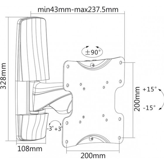 - Расстояние от стены (потолка): 45 — 237.5 мм