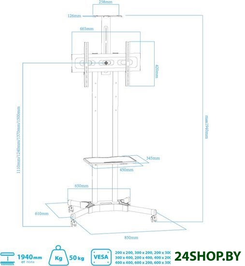 - Регулировка высоты: 1 110 — 1 500 мм