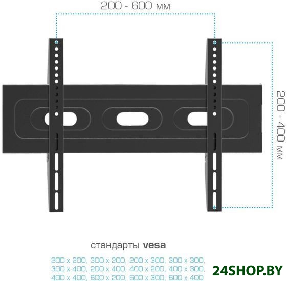 - Совместимость с креплением VESA: 200x200, 200x300, 200x400, 300x200, 300x300, 300x400, 400x200, 400x300, 400x400, 600x200, 600x300, 600x400