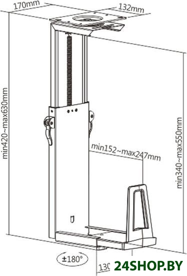 - Угол поворота (без ТВ): 360 ° (вращение на +/-180°)