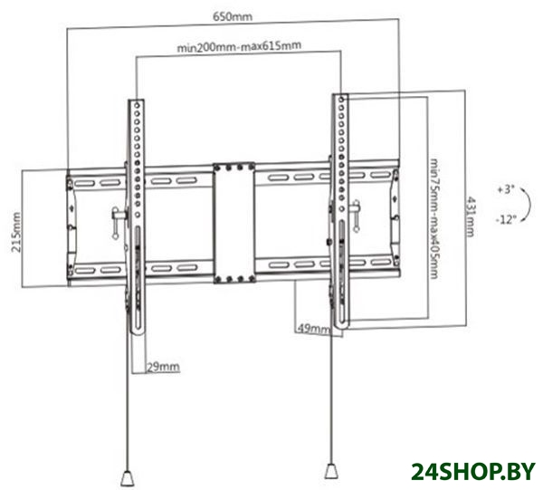 - Угол наклона (без ТВ): 15 ° (-12°/+3°)