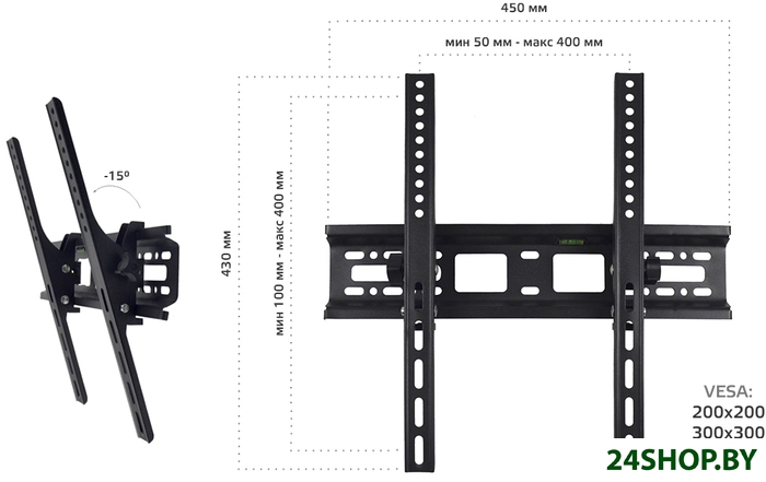 - Совместимость с креплением VESA: 200x200, 300x300, 400x200, 400x400