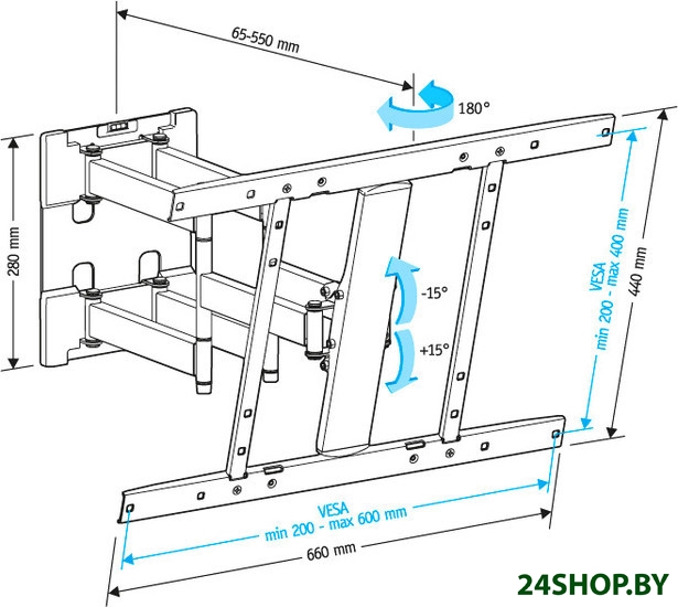 - Расстояние от стены (потолка): 65 — 550 мм