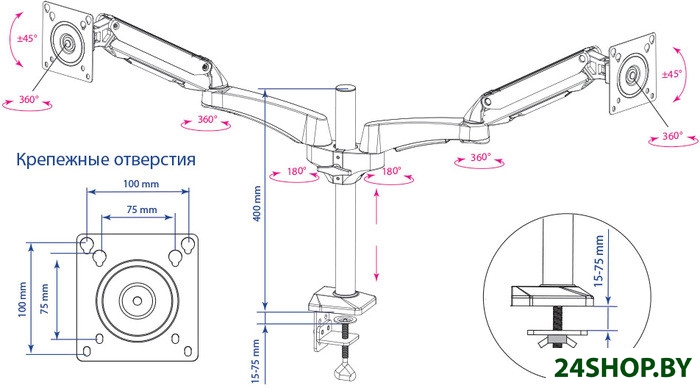 - Максимальная нагрузка: 12 кг (по 6 на каждый монитор)