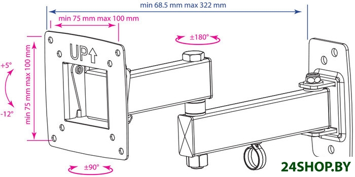 - Расстояние от стены (потолка): 68.5 — 322 мм