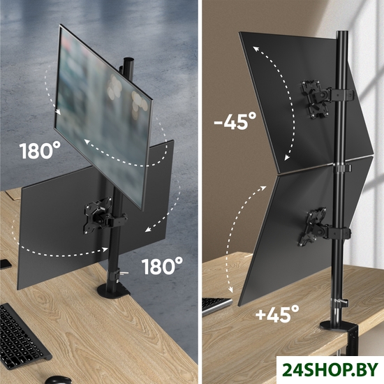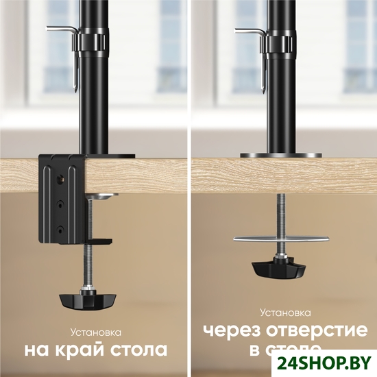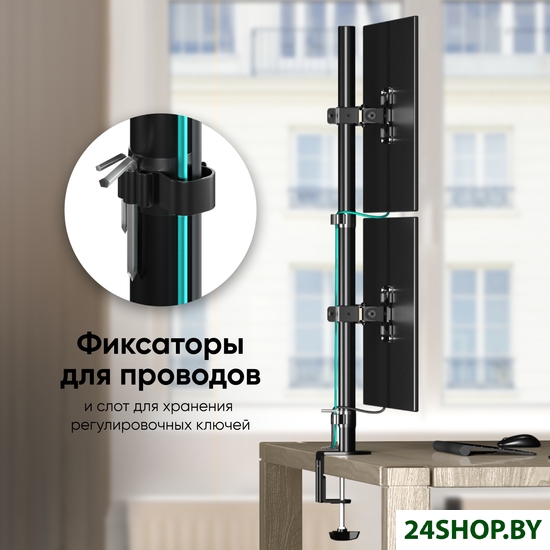 - Функциональные особенности: поворотный, с регулировкой высоты, кабель-канал, струбцинное крепление