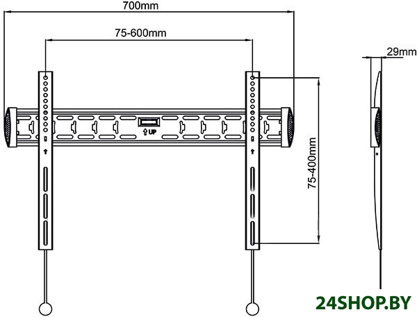 - Совместимость с креплением VESA: 75x75, 200x100, 200x200, 300x300, 300x400, 600x400