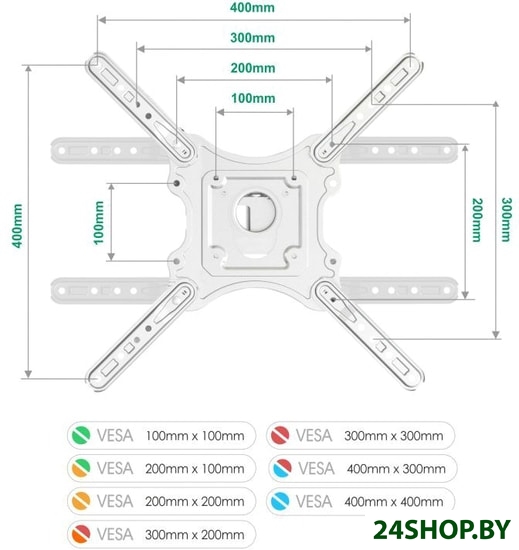 - Совместимость с креплением VESA: 200x200, 200x300, 300x200, 400x200, 300x300, 400x300, 400x400