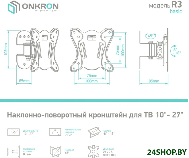 - Совместим с телевизорами: 10 — 27 "