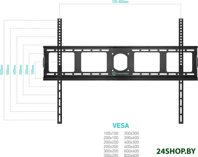 - Совместимость с креплением VESA: 100x100, 200x100, 200x200, 200x300, 300x200, 300x300, 300x400, 400x300, 400x400, 600x400, 800x600