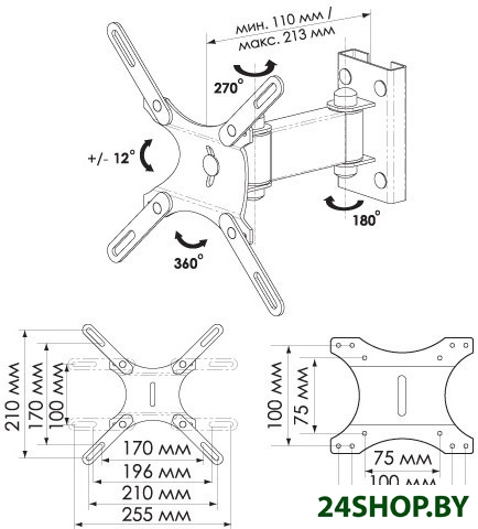 Самые популярные размеры, на которые рассчитаны кронштейны для современных телевизоров и мониторов, - это диапазон от 15 до 65 дюймов. При этом подобрать крепёжную систему можно и для самых маленьких - диагональю 10 дюймов, и для больших 84-дюймовых. Для остальных же видов техники расчёт ведется в метрической системе, поэтому, чтобы не ошибиться с параметрами, вы можете самостоятельно измерить длину и ширину основания вашего устройства. При этом ювелирной точности от вас не потребуется, так как большинство кронштейнов имеют раздвижную систему и могут быть отрегулированы по нужным вам размерам. Если определить размер проблематично, можно приобрести универсальный кронштейн.