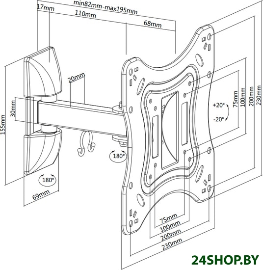 - Расстояние от стены (потолка): 82 — 195 мм